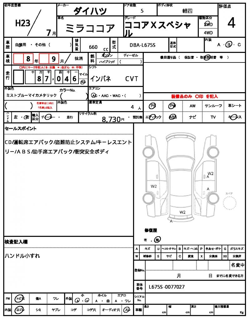 | Grade | ココアXスペシャル | Model Code | DBA-L675S |