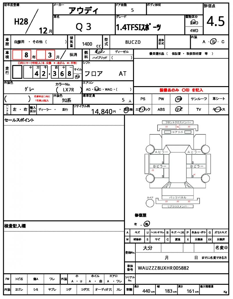 | Grade | 1.4TFSIスポーツ | Model Code | 8UCZD |