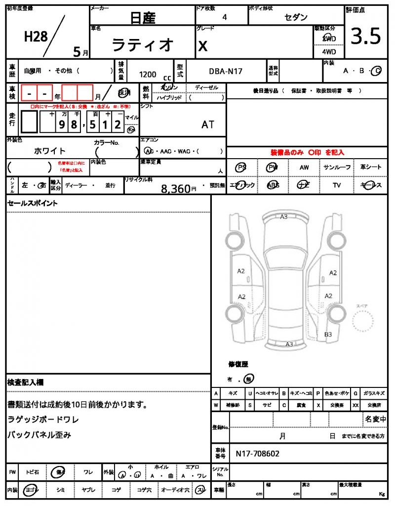 | Registration Date | 2016/05 | Chassis Number | N17-708602 |