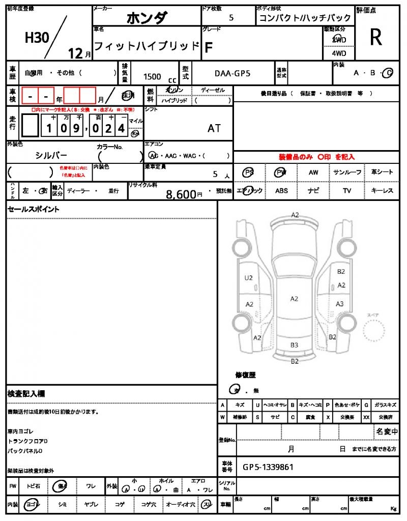 | Manufacturer | HONDA | Model | FIT HYBRID |