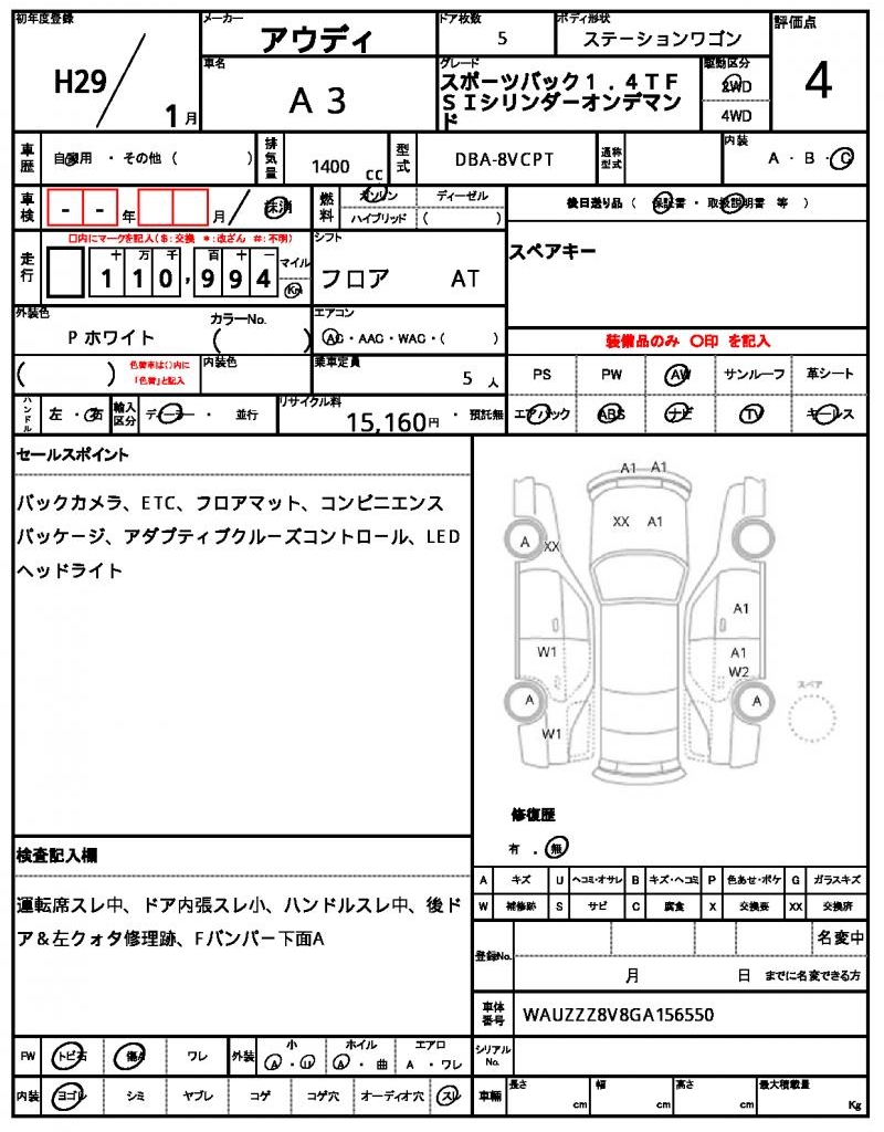 | Registration Date | 2017/01 | Chassis Number | WAUZZZ8V8GA156550 |