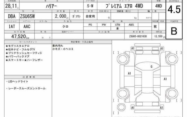 | Grade | プレミアム エアロ 4WD | Model Code | DBA-ZSU65W |