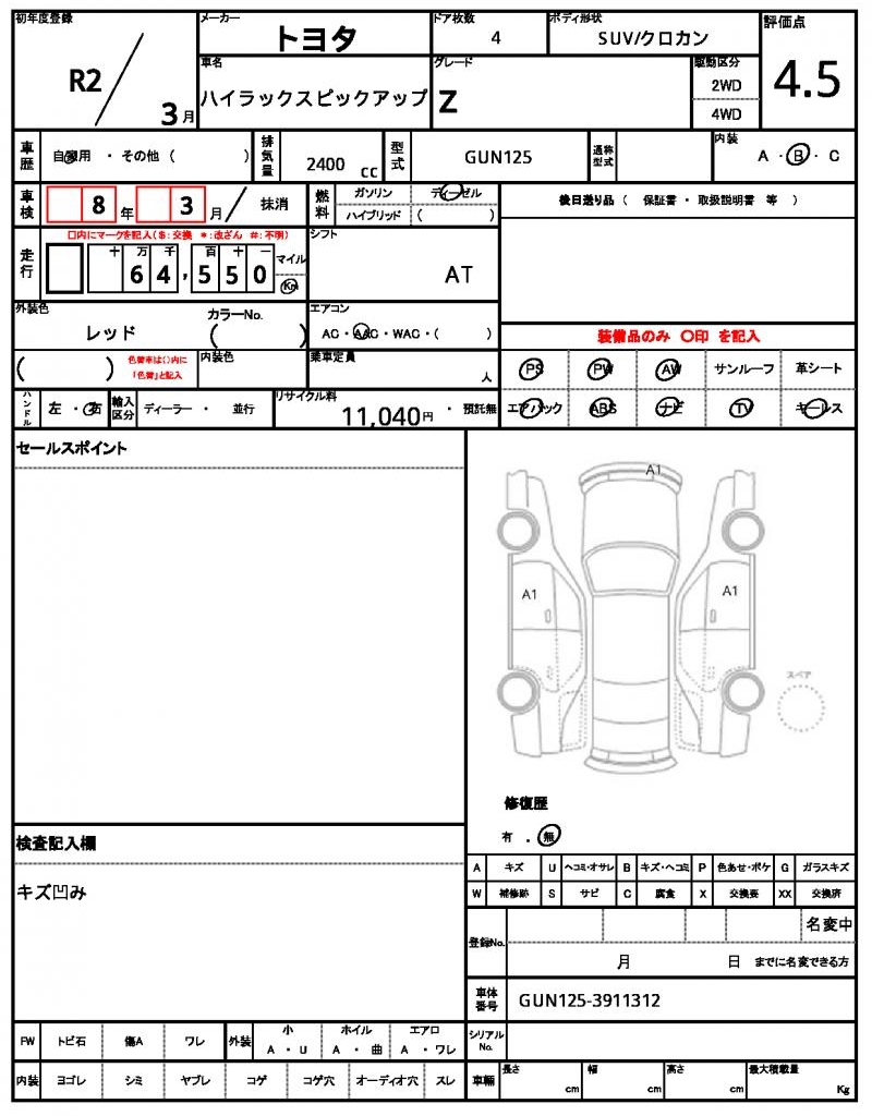 | Mileage | 64,550 km | Engine Size | 2,400 cc |