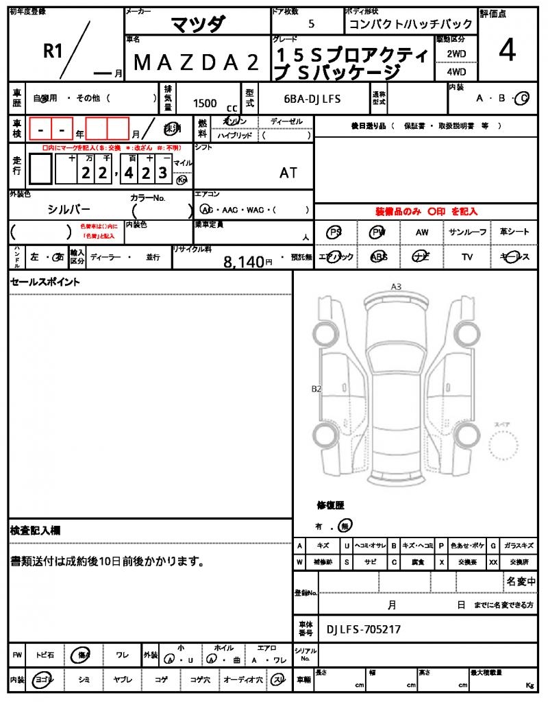 | Grade | 15Sプロアクティブ Sパッケージ | Model Code | 6BA-DJLFS |