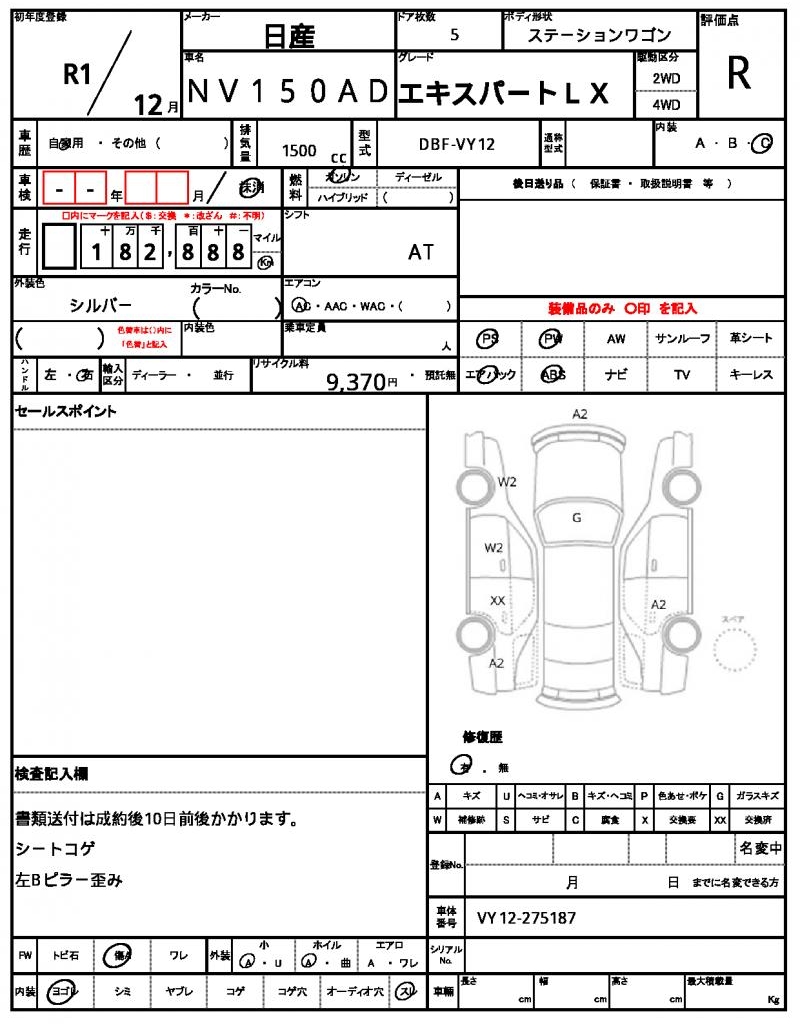 | Grade | エキスパートLX | Model Code | DBF-VY12 |