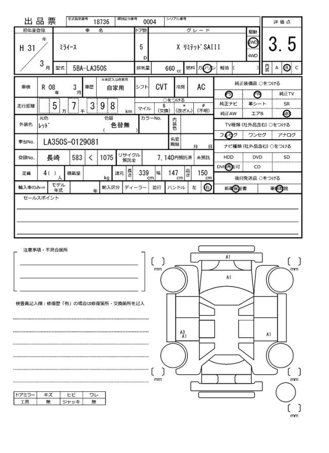 | Grade | X リミテッドSA? | Model Code | 5BA-LA350S |