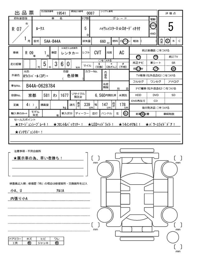 | Grade | ハイウェイスターX☆Dオーディオ付 | Model Code | 5AA-B44A |