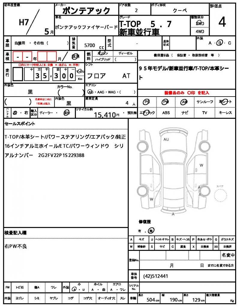 | Manufacturer | PONTIAC | Model | PONTIAC FIREBIRD |