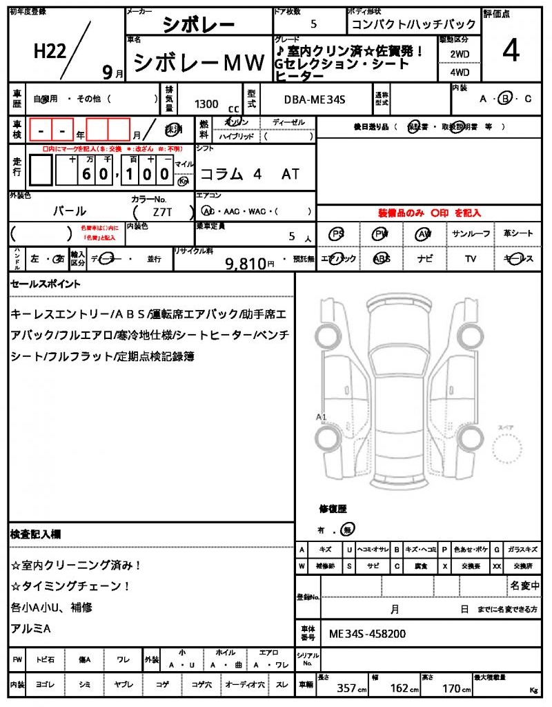 | Grade | ♪室内クリン済☆佐賀発!Gセレクション・シートヒーター | Model Code | DBA-ME34S |