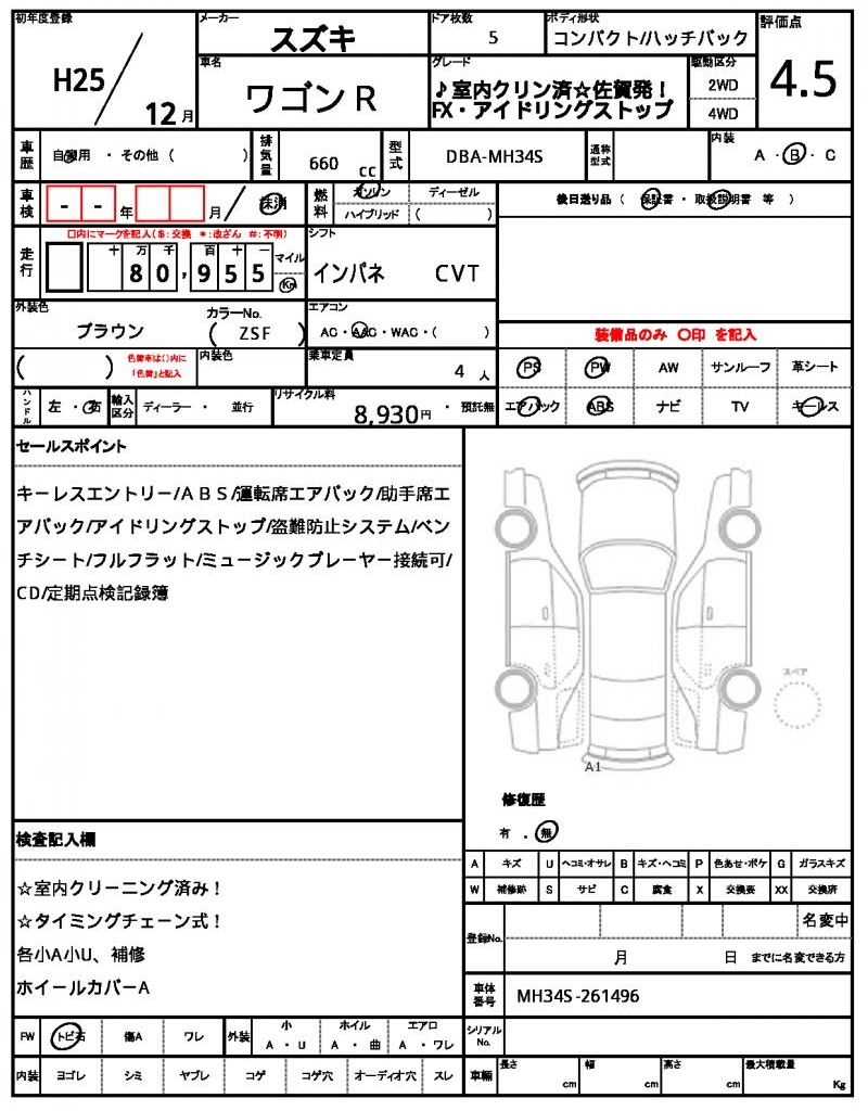 | Grade | ♪室内クリン済☆佐賀発!FX・アイドリングストップ | Model Code | DBA-MH34S |