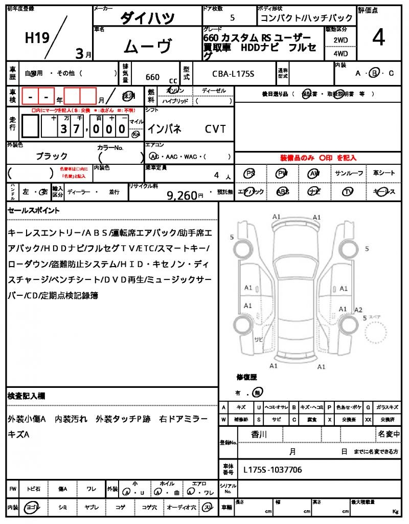 | Grade | 660 カスタム RS | Model Code | CBA-L175S |