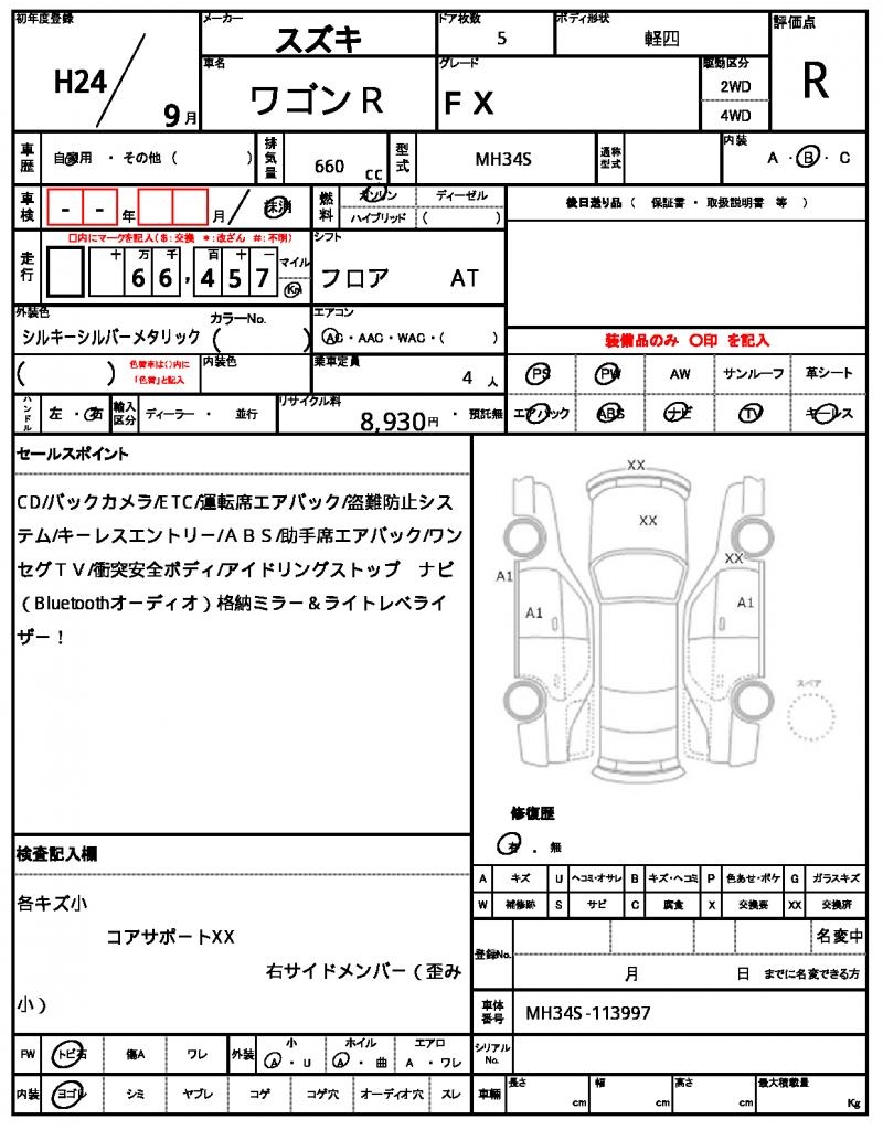 | Manufacturer | SUZUKI | Model | WAGON R |