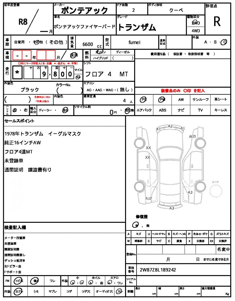 | Manufacturer | PONTIAC | Model | PONTIAC FIREBIRD |