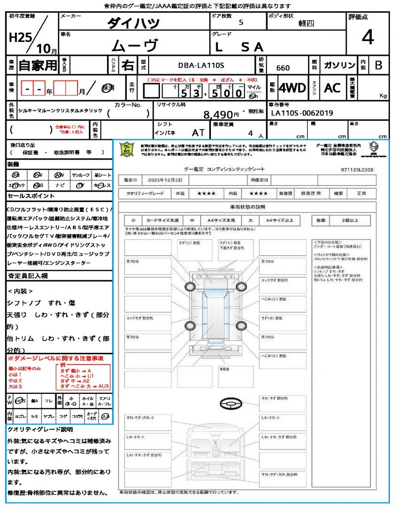 | Registration Date | 2013/10 | Chassis Number | LA110S-0062019 |