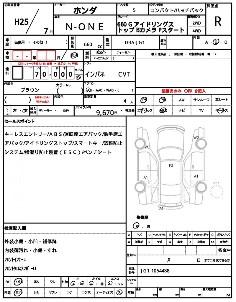 | Manufacturer | HONDA | Model | N-ONE |