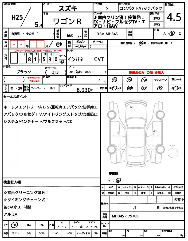 | Grade | ♪室内クリン済!佐賀発!FX・ナビ・フルセグTV・エアロ・16AW | Model Code | DBA-MH34S |