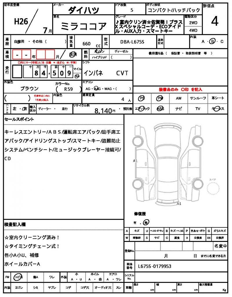 | Mileage | 84,509 km | Engine Size | 660 cc |