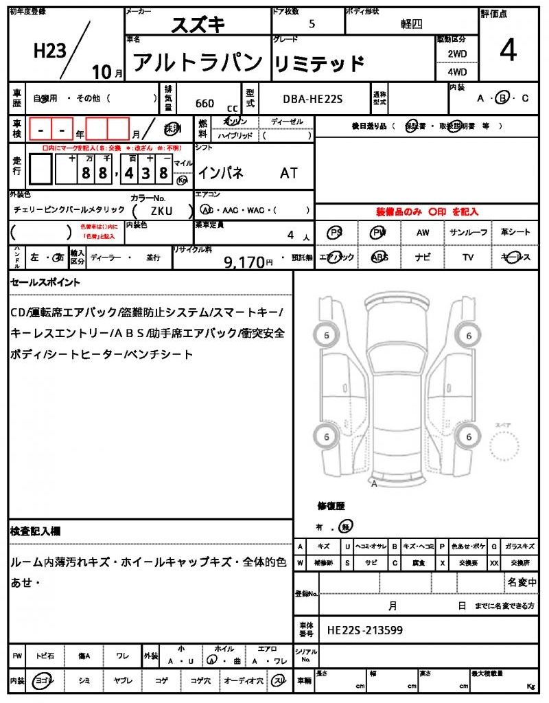 | Grade | リミテッド | Model Code | DBA-HE22S |