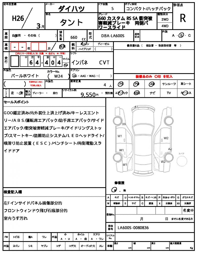 | Grade | 660 カスタム RS SA | Model Code | DBA-LA600S |